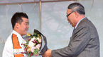 [OSEN=박준형 기자] 27일 오후 서울 플라자 호텔 다이아몬드홀에서 진행된 프로야구 선수 정근우와 이용규의 입단식에서 한화 김응룡 감독이 정근우와 악수하며 꽃다발을 건네고 있다. 정근우와 이용규는 지난 17일 한화와 각각 4