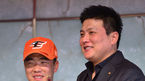 [OSEN=박준형 기자] 27일 오후 서울 플라자 호텔 다이아몬드홀에서 진행된 프로야구 선수 정근우와 이용규의 입단식에서 한화 정근우가 김태균과 포즈를 취하고 있다. 정근우와 이용규는 지난 17일 한화와 각각 4년 총액 70억원, 67