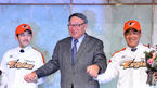 [OSEN=박준형 기자] 27일 오후 서울 플라자 호텔 다이아몬드홀에서 진행된 프로야구 선수 정근우와 이용규의 입단식에서 한화 김응룡 감독이 정근우, 이용규의 손을 잡고 포즈를 취하고 있다. 정근우와 이용규는 지난 17일 한화와