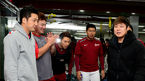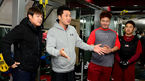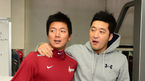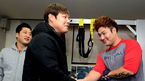 [OSEN=목동, 지형준 기자] 넥센 히어로즈로 트레이드 된 윤석민이 28일 오후 서울 목동구장에서 코칭스태프 및 선수단과 첫 인사를 가졌다. 이택근이 웨이트 트레이닝 도중 문우람에 초콜릿을 건네고 있다. 넥센은 지난 26일 오전