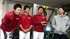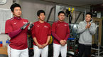 [OSEN=목동, 지형준 기자] 넥센 히어로즈로 트레이드 된 윤석민이 28일 오후 서울 목동구장에서 코칭스태프 및 선수단과 첫 인사를 가졌다. 한화에서 방출된 백승룡, 2차 드래프트 NC에서 지명된 이상민, 윤영삼이 선수단과 인사