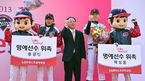 [OSEN=잠실,박준형 기자] 30일 오후 서울 잠실구장에서 열린 LG트윈스 러브페스티벌에서 명예선수로 위촉된 가수 홍경민과 배우 박성웅이 포즈를 취하고 있다. 올해로 3회째를 맞이하는 LG트윈스 ‘러브페스티벌’ 행사는 팬들의