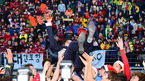 [OSEN=천안, 백승철 기자] 1일 오후 천안 유관순체육관에서 열린 '2013-2014 NH농협 V리그' 남자부 현대캐피탈과 삼성화재의 경기, 현대캐피탈의 승리가 확정되자 선수들이 기뻐하고 있다. 전통의 라이벌전에서 현대캐피탈이 웃었다
