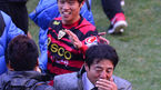 [OSEN=울산, 민경훈 기자] 1일 오후 울산문수경기장에서 현대오일뱅크 K리그 클래식 2013 40라운드 최종전 울산 현대와 포항 스틸러스의 경기, 종료 직전 포항 신영준의 결승골로 우승을 한 포항 스틸러스 선수들과 황선홍 감독이