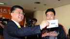 [OSEN=부산, 이대선 기자] 1일 오전 사직야구장 4층 강당에서 롯데 자이언츠 2013시즌 납회 행사가 열렸다. 구단 MVP를 수상한 롯데 손아섭이 최하진 롯데 자이언츠 대표이사와 기념촬영을 하고 있다. 납회 행사에서는 구단 MVP, 우수
