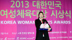 [OSEN=백승철 기자] 3일 오후 서울 삼성동 서울 컨벤션에서 열린 '2013 대한민국 여성체육대상' 에서 장미란재단 장미란이 후원금을 전달받고 인사말을 하고 있다. 이날 시상식에서 기보배(양궁)는 제25회 윤곡여성체육대상을 수