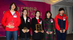 [OSEN=백승철 기자] 3일 오후 서울 삼성동 서울 컨벤션에서 열린 '2013 대한민국 여성체육대상' 에서 수상자 박지수, 심석희, 기보배, 김미정, 강은혜(왼쪽부터)가 기념촬영을 갖고 있다. 이날 시상식에서 기보배(양궁)는 제25회 윤