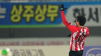 [OSEN=상주, 민경훈 기자] 4일 오후 상주시민운동장에서 현대오일뱅크 K리그 2013 승강 플레이오프 1차전 상주 상무와 강원 FC 경기, 상주 이상협이 선제골에 성공한 후 기뻐하고 있다. 클래식 팀의 잔류, 챌린지 팀의 사상 첫 승격.