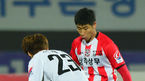 [OSEN=상주, 민경훈 기자] 4일 오후 상주시민운동장에서 현대오일뱅크 K리그 2013 승강 플레이오프 1차전 상주 상무와 강원 FC 경기, 상주 하태균이 헤딩슛을 시도하다 공중에서 강원 배효성과 충돌하며 부상을 당해 고통스러워 하