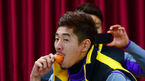 [OSEN=상주, 민경훈 기자] 4일 오후 경상북도 상주 관내 여러 초등학교와 고등학교에서 축구로 만드는 행복 '추캥'이 봉사활동을 했다. 염기훈이 축구 꿈나무들을 가르친 후 실내에서 상주 곶감을 먹고 있다. 축구선수들의 봉사활