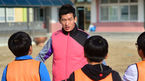 [OSEN=상주, 민경훈 기자] 4일 오후 경상북도 상주 관내 여러 초등학교와 고등학교에서 축구로 만드는 행복 '추캥'이 봉사활동을 했다. 하대성이 축구 꿈나무들에게 축구 패스에 대해 설명하며 시범을 보이고 있다. 축구선수들의