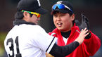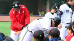 [OSEN=포항, 곽영래 기자] 5일 오전 포항구장에서 열린 '2013 야구대제전' 동산고와 광주일고의 경기, 광주일고 이호준이 후배들의 수비실력에 박수를 보내고 있다. 대한야구협회(KBA, 회장 이병석 국회부의장)는 한국야구 전체의