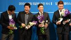 [OSEN=최규한 기자] 5일 오전 서울 논현동 임피리얼 팰리스 호텔에서 '2013 올해의 상' 시상식이 열렸다. 4월 MVP로 선정된 KIA 양현종, 7월 삼성 최형우, 8월 손아섭, 9월 박병호가 소감을 전하고 있다. 스포츠서울이 제정하고 스포츠