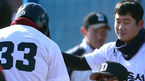 [OSEN=포항, 곽영래 기자] 6일 오전 포항구장에서 열린 '2013 야구대제전' 동성고와 덕수고의 경기, 동성고 장채근이 최주환의 안타때 홈에서 아웃당한 문우람에게 이야기를 하고 있다. 대한야구협회(KBA, 회장 이병석 국회부의장)
