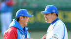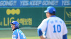 [OSEN=대구, 곽영래 기자] 7일 오후 대구 시민야구장에서 '2013 희망더하기 자선야구대회'가 열렸다. 5회초 양신팀 서용빈 코치가 투수교체를 위해 마운드에 올라 양준혁과 이야기를 나누고 있다. 희망더하기 자선야구대회는 선후