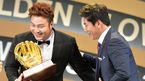 [OSEN=이대선 기자] 10일 오후 서울 삼성동 코엑스 오디토리움에서 '2013 한국야쿠르트 세븐 프로야구' 골든글러브 시상식이 열렸다. 투수부문 골든글러브를 수상한 넥센 손승락이 동료 박병호의 축하를 받고 있다. 골든글러브 후