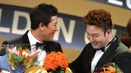 [OSEN=이대선 기자] 10일 오후 서울 삼성동 코엑스 오디토리움에서 '2013 한국야쿠르트 세븐 프로야구' 골든글러브 시상식이 열렸다. 포수 부문 골든글러브를 수상한 롯데 강민호가 동료 정훈에게 축하를 받고 있다. 골든글러브