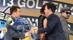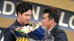 [OSEN=이대선 기자] 10일 오후 서울 삼성동 코엑스 오디토리움에서 '2013 한국야쿠르트 세븐 프로야구' 골든글러브 시상식이 열렸다. 외야수 부문 골든글러브를 수상한 롯데 손아섭이 시상자 개그맨 정준하에게 축하를 받고 있다.