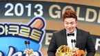 [OSEN=박준형 기자] 10일 오후 서울 삼성동 코엑스 오디토리움에서 열린 '2013 한국야쿠르트 세븐 프로야구' 골든글러브 시상식에서 LG 박용택이 외야수부문상을 수상한 뒤 소감을 말하고 있다 골든글러브 후보는 올 시즌 출장 경