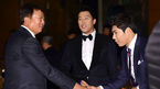 [OSEN=이대선 기자] 10일 오후 서울 삼성동 코엑스 오디토리움에서 '2013 한국야쿠르트 세븐 프로야구' 골든글러브 시상식이 열렸다. 시상식에 앞서 NC 김경문 감독이 두산 김현수, 민병헌과 인사를 나누고 있다. 골든글러브 후보는