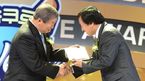 [OSEN=최규한 기자] 10일 오후 서울 삼성동 코엑스 오디토리움에서 열린 '2013 한국야쿠르트 세븐 프로야구' 골든글러브 시상식에서 KBO 구본능 총재가 강운태 광주광역시장에게 감사패를 전달하고 있다. 골든글러브 후보는 올 시