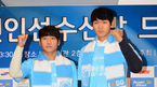 [OSEN=백승철 기자] 10일 오후 서울 신문로 축구회관에서 열린 2014년도 K리그 신인선수 지명 드래프트에서 대구 자유선발선수 박성용과 금교진이 기념촬영을 하고 있다. 이날 드래프트 지명 순서는 K리그 클래식(1부) 구단이 1순위