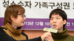 [OSEN=이대선 기자] 10일 오전 서울 통인동 참여연대 느티나무홀에서 지난 9월 7일 동성 결혼식을 올린 김조광수 감독과 레인보우팩토리 김승환 대표가 성소수자 가족구성권 보장 및 혼인신고 수리 촉구를 위한 기자회견을 가졌
