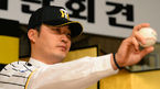 [OSEN=오사카, 정송이 기자] 13일 오후 일본 오사카 리츠칼튼 호텔에서 진행된 '오승환 한신 타이거스 입단 기자회견'에서 오승환이 야구공을 바라보고 있다. 한국 최고의 마무리투수로 이름을 날렸던 오승환은 지난 4일 한신과 2