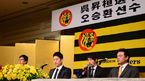 [OSEN=오사카, 정송이 기자] 13일 오후 일본 오사카 리츠칼튼 호텔에서 진행된 '오승환 한신 타이거스 입단 기자회견'에서 와다 유타카 감독과 오승환이 기념촬영을 하고 있다. 한국 최고의 마무리투수로 이름을 날렸던 오승환은