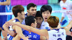 [OSEN=인천,박준형 기자] 15일 오후 인천 계양체육관에서 열린 '2013-2014 NH농협 V리그' 남자부 대한항공과 삼성화재의 경기, 1세트 대한항공 백광언이 훼이크동작으로 득점 올린후 동료들의 축하를 받고 있다 삼성화재는 우리카드