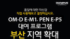 - 올림푸스 미러리스 카메라 OM-D E-M1, PEN E-P5 3박 4일간 무료 체험 기회 제공 [OSEN=강희수 기자] 올림푸스한국(www.olympus.co.kr)은 자사 플래그십 카메라 모델인 OM-D E-M1과 PEN E-P5를 3박 4일간 체험할 수 있는이벤트를 부산 지역으로 확