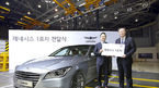 - 충돌안전성 탄생시킨 남양연구소 충돌시험장에서 1호차 전달 [OSEN=강희수 기자] 현대자동차(주)가 23일 현대차 남양연구소에서 ‘신형 제네시스 1호차’ 전달식을 가졌다. 이를 기점으로 전국 830개 지점에서 계약자들에게 차
