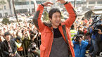 [OSEN=최규한 기자] '응답하라 1994'의 '쓰레기'역을 맡았던 배우 정우가 31일 명동에서 프리허그 행사를 갖고 팬들과 취재진들을 향해 인사하고 있다. 정우는 tvN '응답하라 1994'의 시청률 10%가 넘은 것을 기념, 이날 오후 1시 명동