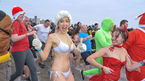 [OSEN/WENN 특약] 2014 새해를 맞은 1월 1일 미국 뉴욕 맨하탄 브루클린에서 진행된 코니 아일랜드 북극곰 수영(The Coney Island Polar Bear swim) 축제에서 한 여성 참가자가 강으로 뛰어들며 포즈를 취하고 있다. 올해 111번째를 맞은 새해맞