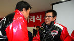 [OSEN=잠실구장, 곽영래 기자] 3일 오후 서울 잠실구장에서 열린 LG 트윈스 시무식에서 김선우와 임재철이 인사말을 하고 있다. LG 트윈스가 3일 시무식으로 2014년 우승을 향해 힘찬 첫 발을 내딛었다. 지난 2013시즌 2위로 가을잔치