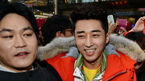 [OSEN=백승철 기자] 김성균과 손호준이 4일 오후 서울 명동 일대를 공약 이행차 방문, 승합차에서 내려 팬들을 바라보고 있다. 김성균은 '응답하라 1994'가 시청률 10%를 달성하면 해태 역의 배우 손호준과 함께 서울 명동에서 ‘응