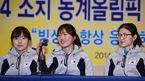 [OSEN=박준형 기자] 15일 오후 서울 태릉선수촌 국제스케이트장에서 진행된 '2014 소치 동계올림픽' 빙상국가대표선수단 미디어 데이 행사에서 쇼트트랙 여자팀 심석희와 박승희, 김아랑이 소감을 말하고 있다. 이번 대회에서도