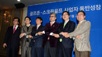 [OSEN=지형준 기자] 토털골프문화기업 골프존이 27일 오전 서울 여의도 CCMM빌딩에서 스크린 골프장 사업주들과의 동반성장 방안을 발표했다. 새누리당 이완영 의원, 권유식 사업주 대표, 골프존 장성원 전무, 한국시뮬레이션골프