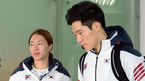 [OSEN=소치(러시아),박준형 기자] 2014 소치 동계올림픽 D-5을 앞두고 스피스스케이팅 간판 이상화와 모태범, 이승훈이 2일 오후(현지시간) 러시아 소치국제공항을 입성했다. 모태범과 이상화, 이승훈이 인터뷰를 하고 있다. 이상화