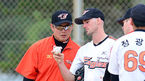 [OSEN=오키나와(일본), 백승철 기자] 5일 오전 일본 오키나와 고친다구장에서 클레이와 송창식이 이야기를 나누고 있다. 한화는 지난 1월 16일부터 오키나와 고친다구장에서 본격적인 2014 시즌 스프링캠프를 시작했다. 한화의 이