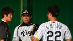[OSEN=오키나와(일본), 백승철 기자] 7일 오전 일본 오키나와 기노자 구장에서 오승환이 불펜 피칭을 마친 후 와다 유타카 감독과 이야기를 나누고 있다. 한신과 2년 계약을 맺고 일본 프로야구에 진출한 오승환은 지난 1일 첫 한