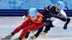 [OSEN=소치(러시아), 박준형 기자] 10일(한국시간) 러시아 소치 아이스버그 펠리스에서 열린 2014 소치올리픽 쇼트트랙 1500mm 남자 준결승, 2조 대한민국 신다운과 이한빈이 충돌하며 함께 넘어지고 있다. 이한빈은 어드벤스로 가까