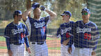 [OSEN=글렌데일(애리조나), 이대선 기자] 11일(한국시간) 미국 애리조나주 글렌데일 캐멀벡랜치에서 메이저리그 LA다저스의 스프링 트레이닝이 진행됐다. 다저스 류현진이 동료들과 타격 차레를 기다리고 있다. LA 다저스의 류현