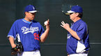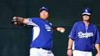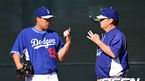[OSEN=글렌데일(애리조나), 이대선 기자] 12일(한국시간) 미국 애리조나주 글렌데일 캐멀벡랜치에서 메이저리그 LA다저스의 스프링 트레이닝이 진행됐다. 다저스 류현진이 릭 허니컷 코치와 이야기를 나누고 있다. 류현진은 스프