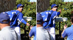 [OSEN=글렌데일(애리조나), 이대선 기자] 13일(한국시간) 미국 애리조나주 글렌데일 캐멀벡랜치에서 메이저리그 LA다저스의 스프링 트레이닝이 진행됐다. 지나가는 카트를 타고 훈련장을 나가는 류현진이 사인을 하던 펜을 던져