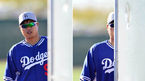 [OSEN=글렌데일(애리조나), 이대선 기자] 14일(한국시간) 미국 애리조나주 글렌데일 캐멀벡랜치에서 메이저리그 LA다저스의 스프링 트레이닝이 진행됐다. 다저스 류현진이 훈련 중 코치와 장난을 치고 있다. 다저스 투수와 포수들