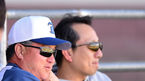 [OSEN=투손(애리조나), 이대선 기자] NC 다이노스가 15일(한국시간) 미국 애리조나주 투손 키노 콤플렉스에서 자체 청백전을 가졌다. 경기장을 찾은 박찬호가 경기를 바라보고 있다. 중심타자 이호준과 에릭 테임즈가 평가전에서