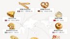 '나라별 빵의 종류'가 화제다. 최근 한 온라인 커뮤니티 게시판에는 '나라별 빵의 종류'라는 제목의 게시물이 올라왔다. 먼저 세계지도 위에 9개 나라의 대표적인 빵의 사진이 실려있다. 구체적으로 '나라별 빵의 종류'를 살펴