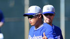 [OSEN=글렌데일(애리조나), 이대선 기자] 18일(한국시간) 미국 애리조나주 글렌데일 캐멀벡랜치에서 메이저리그 LA다저스의 스프링 트레이닝이 진행됐다. 다저스 류현진이 훈련 중 동료들과 이야기를 나누고 있다. 이번 스프링캠