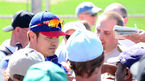 [OSEN=서프라이즈(애리조나), 이대선 기자] 21일(한국시간) 미국 애리조나주 서프라이즈에서 텍사스 레인저스의 스프링 트레이닝이 진행됐다. 텍사스 추신수가 팬들에게 둘러싸여 사인을 해주고 있다. 지난달 15일 미국으로 출국